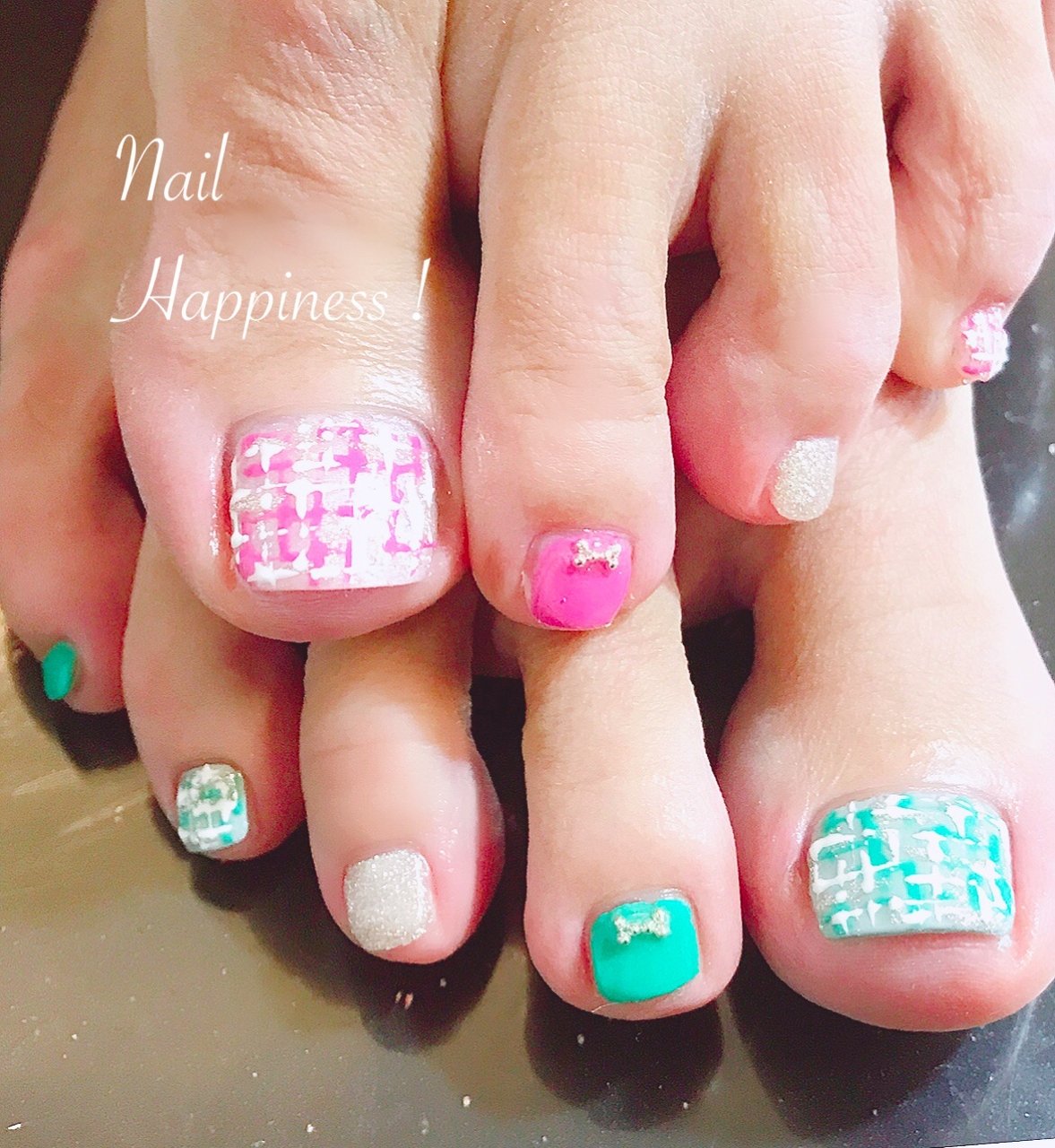 春 オールシーズン フット ツイード リボン Nail Happiness ネイルハピネス ささきまきのネイルデザイン No ネイルブック